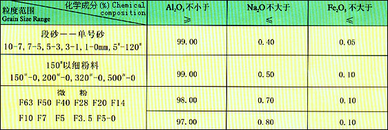 电熔白刚玉技术条件执行中华人民共和国国家标准GB/T2479-1996。
